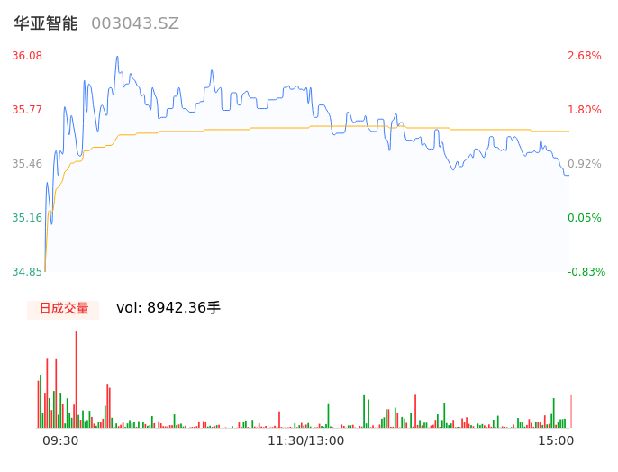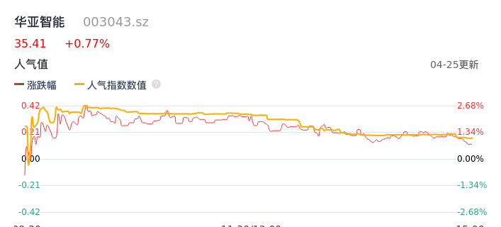 04月25日,华亚智能收报35.41,股价涨幅0.77%,成交金额3187.08万元,换手率1.84%。