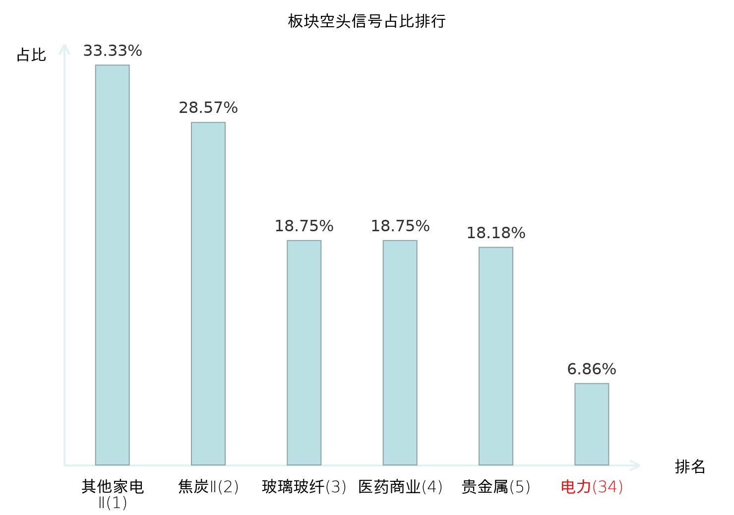 全市场所有行业板块中主力空头信号占比排名中,其他家电Ⅱ板块位居第一。工业金属板块名次提升最快,较昨日上升114位。