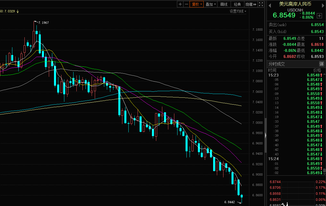 由于近期人民币稳定走强,降低了原料进口成本,预计相关企业盈利能力得到改善。数据显示,近日,在岸、离岸人民币对美元汇率双双强势升破6.90关口,离岸人民币今日最高升至6.8442。而从A股历史走势看,人民币升值时,造纸为首先受益板块。