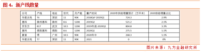 (1) 接下来确定的新产线有2020年京东方B17武汉10.5代、惠科绵阳8.6代,2021年华星光电T7深圳10.5代;