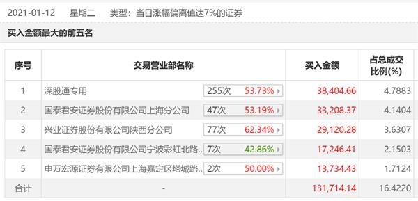 值得注意的是,上一个涨停日(2020年12月2日),兴业证券陕西分公司高居TCL科技龙虎榜买二席位,买入额为4.02亿元。而在此之后,TCL科技股价一度回撤了16个百分点。