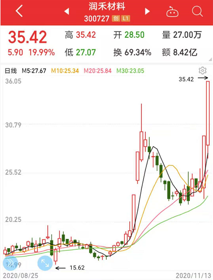 涨幅最高的是润禾材料,该股今日再度涨停,近五日累计涨幅达到57.42%。润禾材料主要专注于有机硅深加工产品及纺织印染助剂产品的研发、生产和销售。有机硅DMC产品价格大幅攀升,无疑是促发润禾材料大涨的首要因素。首创证券表示,9月进入有机硅需求旺季,下游硅胶制品及纺织助剂需求旺盛,叠加担忧海外疫情扩散下游备货意愿较强,行业库存持续去化,同时原材料甲醇等价格也保持坚挺。本次火灾事件预计进一步加剧供需紧张,目前多数生产企业封单不报价,有机硅价格持续看涨。