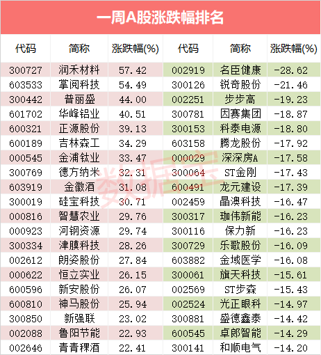 在过去的五个交易日里,哪些黑马股脱颖而出?证券时报·数据宝统计显示,剔除近一个月上市的次新股,本周涨幅前五位的是润禾材料、掌阅科技、普丽盛、华峰铝业和正源股份。