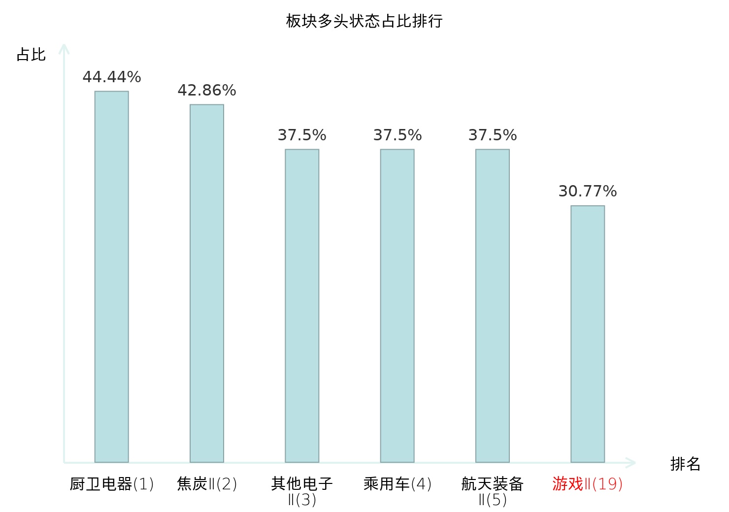 全市场所有行业板块中主力多头状态占比排名中,厨卫电器板块位居第一。元件板块名次提升最快,较昨日上升69位。