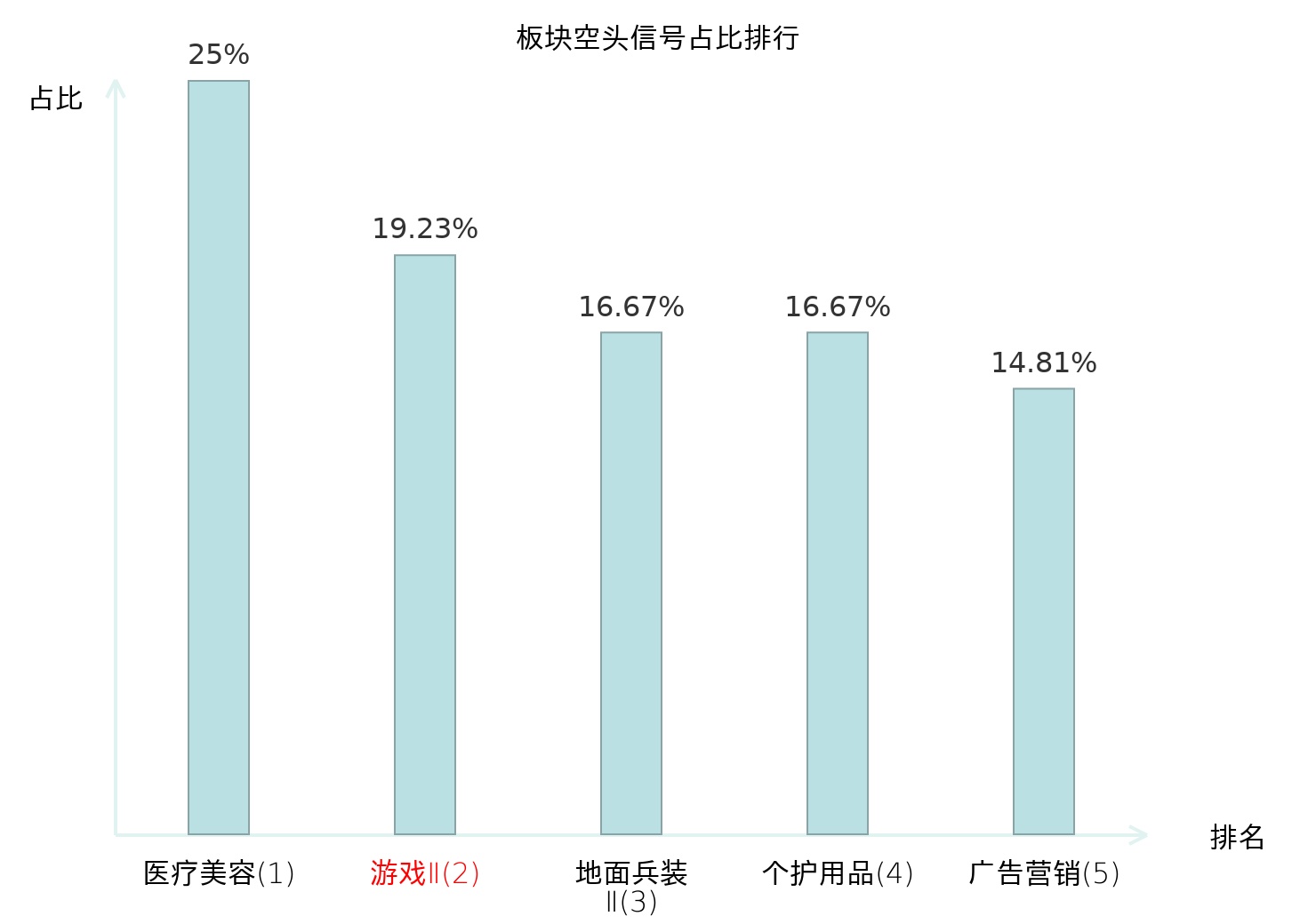全市场所有行业板块中主力空头信号占比排名中,医疗美容板块位居第一。游戏Ⅱ板块名次提升最快,较昨日上升122位。