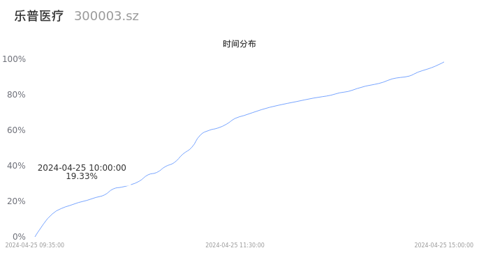 300003乐普医疗2024年04月25日成交24.35万手,成交金额3.44亿元,相较昨日放量4.65万手,换手率1.51%,成交清淡。