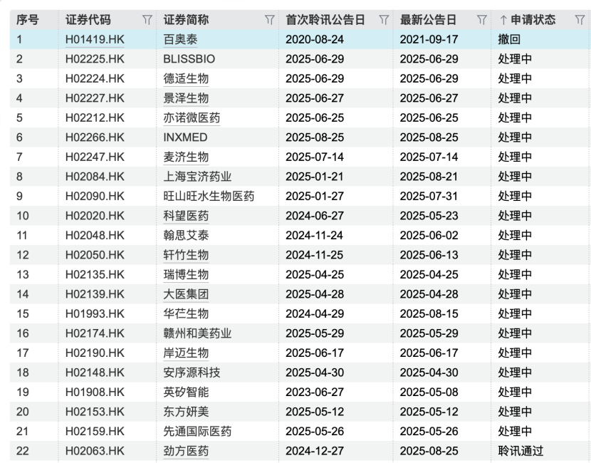 Wind数据显示,目前有49家18A公司已递表港交所,其中有20家的状态为“处理中”,27家为“失效”,1家为“撤回”,1家已通过聆讯。按此计算,仍有至少20家18A公司正等待通过聆讯并上市。