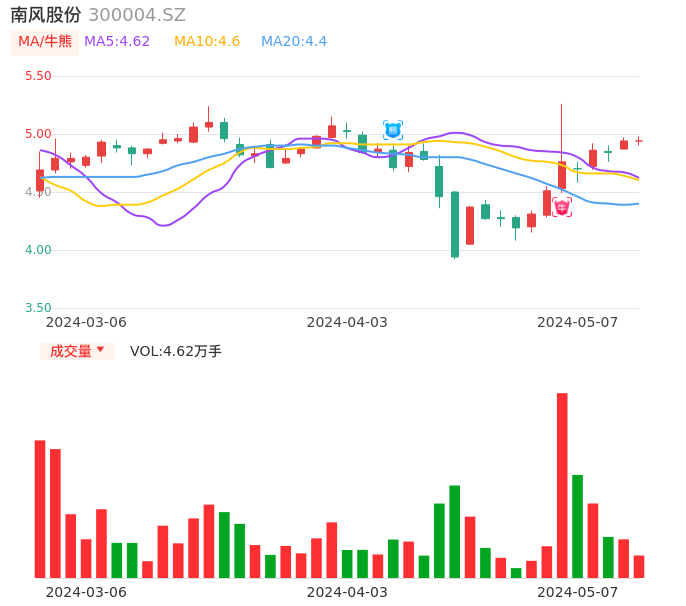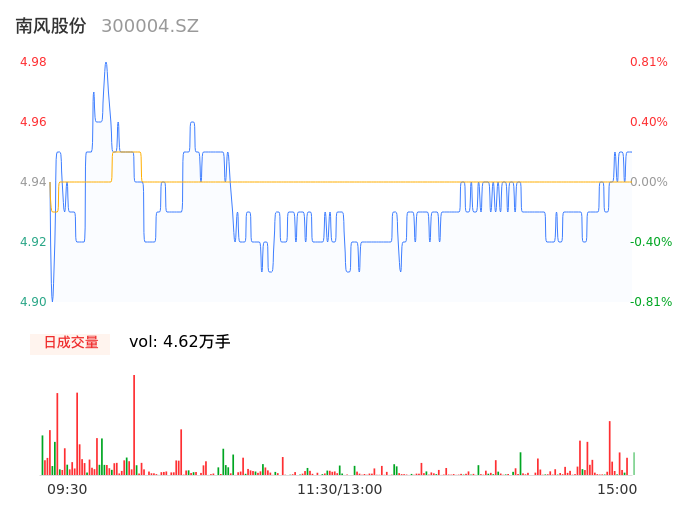 05月07日,南风股份收报4.94,股价涨幅0.00%,成交金额2282.56万元,换手率0.96%。
