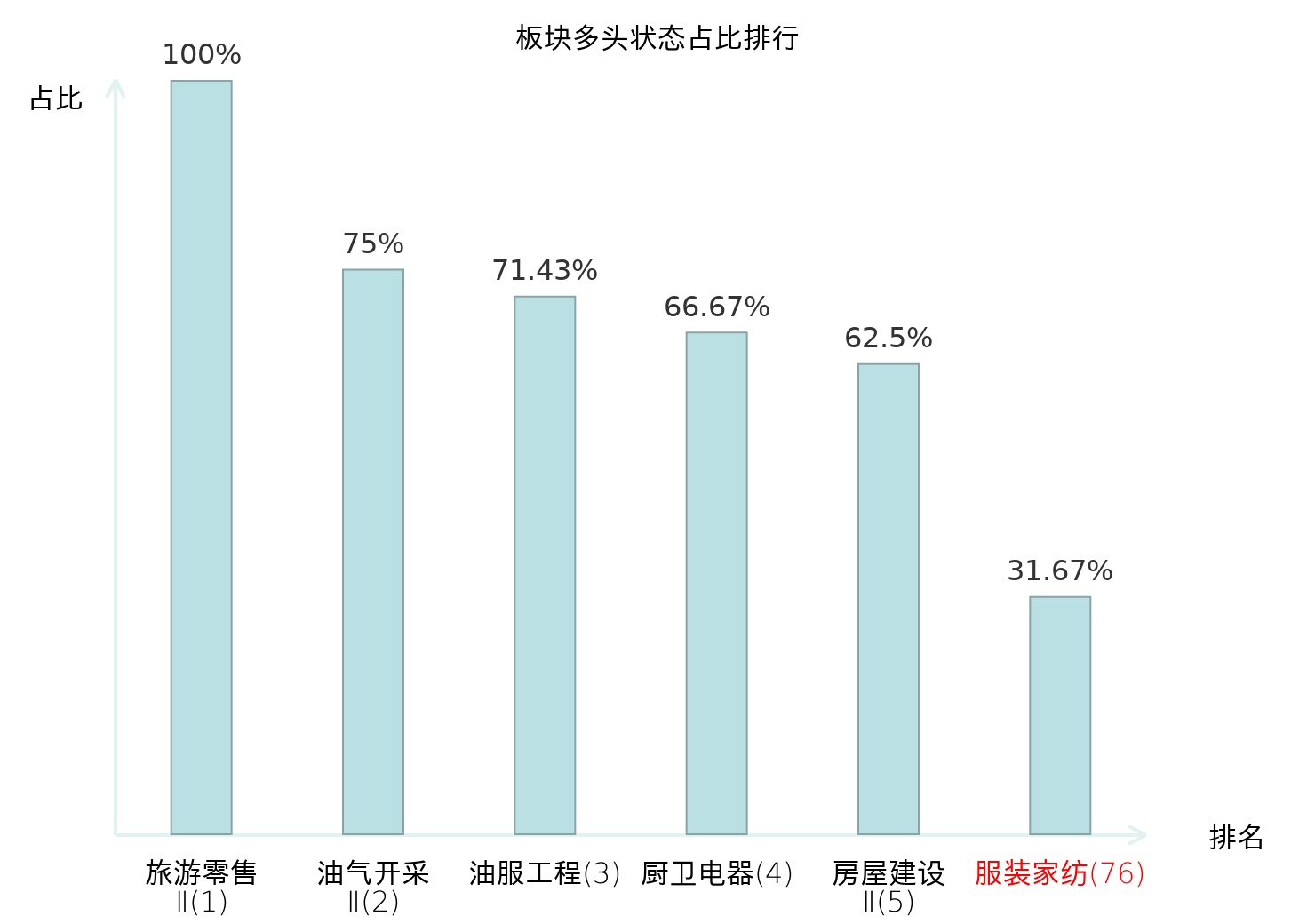 全市场所有行业板块中主力多头状态占比排名中,旅游零售Ⅱ板块位居第一。焦炭Ⅱ板块名次提升最快,较昨日上升58位。