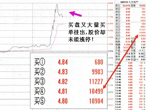如果20以上的价格都是挂的大单(比如10000手),到了20块这个位置,突然就变成了小单(比如几百手),那么此时就不能急着跟进,而是要观察20块这个位置上有没有单子迅速补上来,如果没有,那么就不能追。