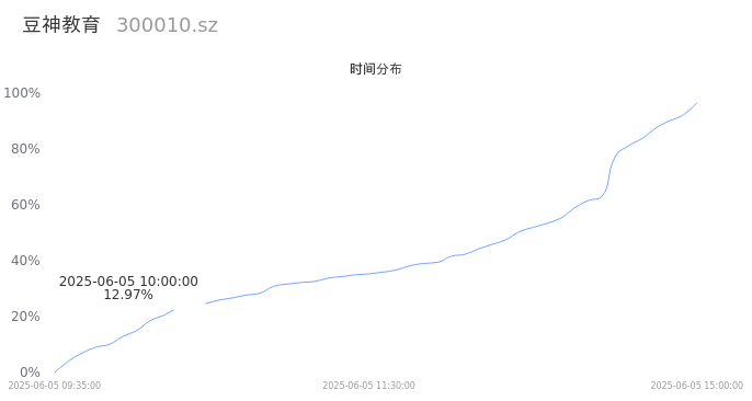300010豆神教育2025年06月05日成交51.93万手,成交金额3.62亿,相较昨日放量10.39万手,换手率3.12%,成交清淡。
