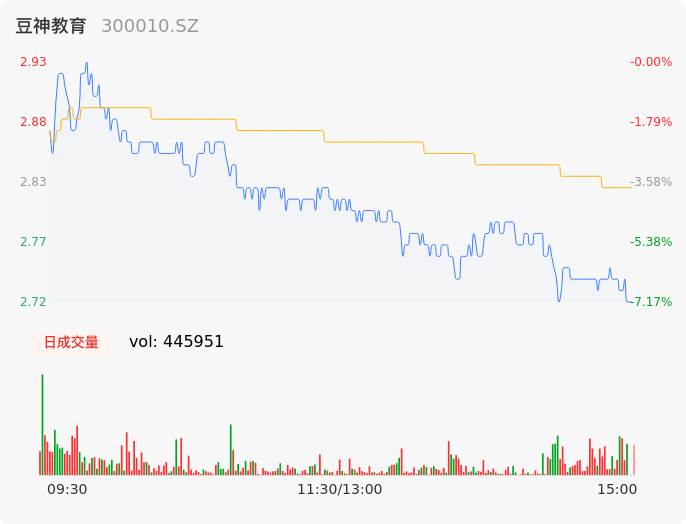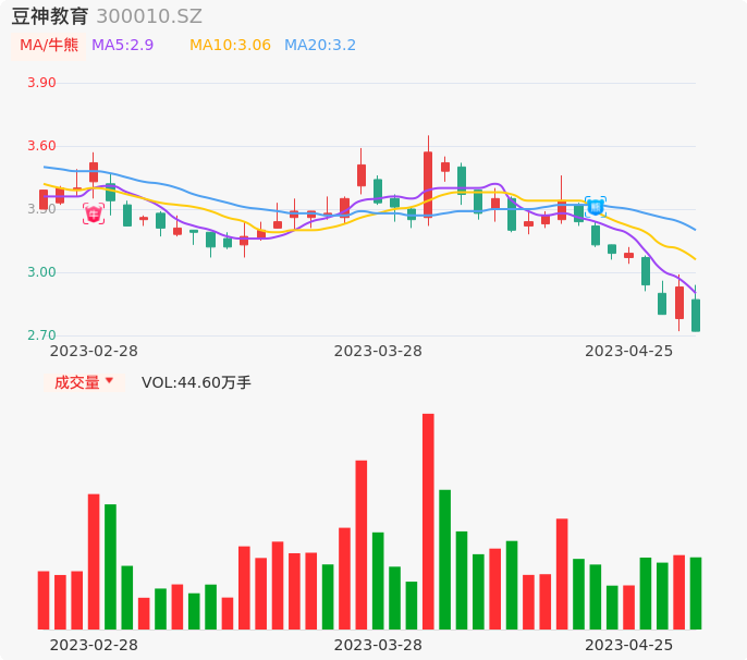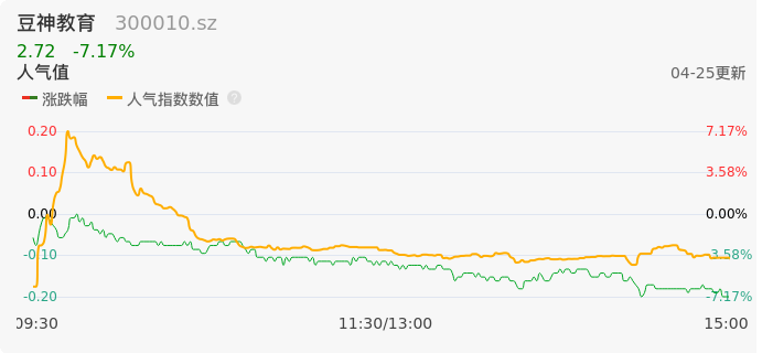04月25日,豆神教育收报2.72,股价涨幅-7.17%,成交金额1.26亿元,换手率5.47%。