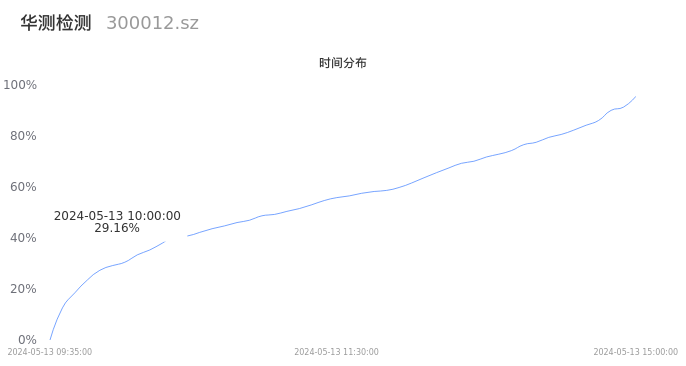 300012华测检测2024年05月13日成交9.77万手,成交金额1.22亿元,相较昨日缩量3.21万手,换手率0.68%,成交清淡。