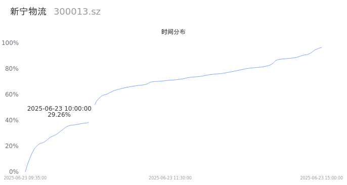 300013新宁物流2025年06月23日成交14.30万手,成交金额5657.13万,相较昨日放量4.30万手,换手率3.21%,成交清淡。