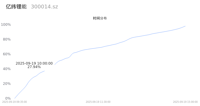 300014亿纬锂能2025年09月19日成交78.64万手,成交金额56.83亿,相较昨日缩量20.27万手,换手率4.22%,成交清淡。