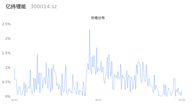 300014亿纬锂能2024年04月25日成交37.55万手,成交金额13.51亿元,相较昨日放量13.46万手,换手率2.02%,成交清淡。