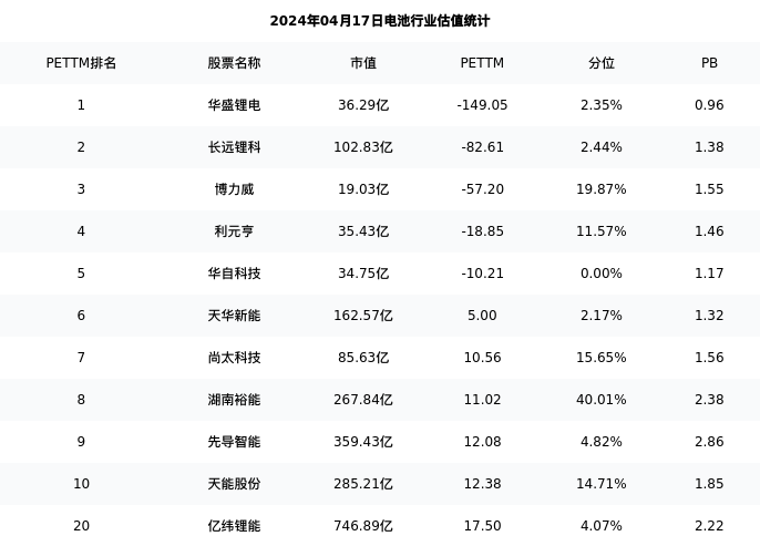 从估值角度看:亿纬锂能最新市盈率PETTM为17.50,在行业内排名15/93,处于4.07分位。