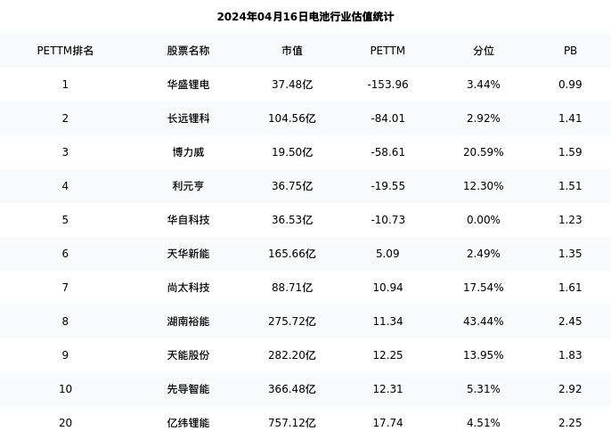 从估值角度看:亿纬锂能最新市盈率PETTM为17.74,在行业内排名15/93,处于4.51分位。