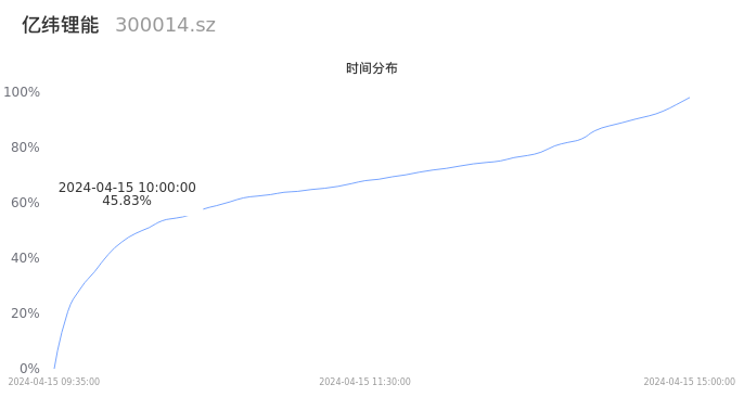 300014亿纬锂能2024年04月15日成交21.26万手,成交金额7.95亿元,相较昨日缩量5.81万手,换手率1.14%,成交清淡。