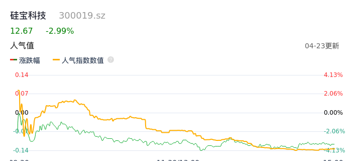04月23日,硅宝科技收报12.67,股价涨幅-2.99%,成交金额1.71亿元,换手率3.92%。