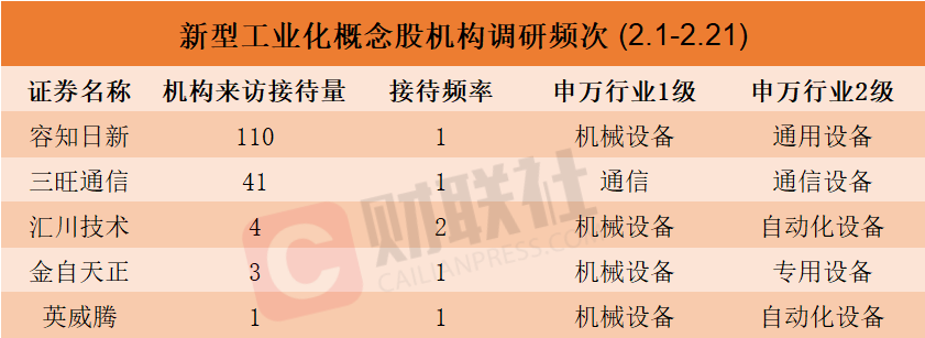 ②梳理2月以来获机构密集调研的新型工业化概念股名单(附表)。