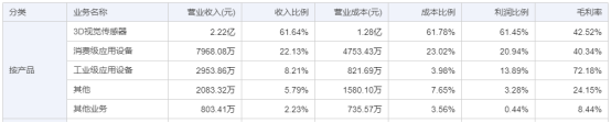 欢迎来到调研放大镜,今天为大家带来的是奥比中光这家公司,我们先来了解一下这家公司是做什么的,我们通过主营构成分析可以清楚的看到:公司是全球领先的3D视觉感知技术方案提供商。