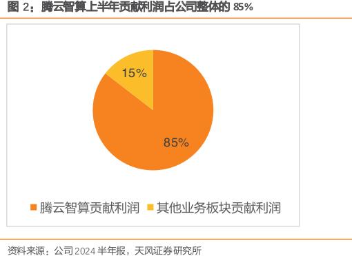 其中24Q2单季度营业收入9.75亿元,YoY+16.25%;扣非归母净利润0.42亿元,去年同期0.04亿元。分产品看,公司于24年初投资设立的控股子公司腾云智算在上半年实现净利润9466万元,贡献利润占公司整体的85%。整体可见,公司利润步入同比增长轨道,业绩拐点或已出现。