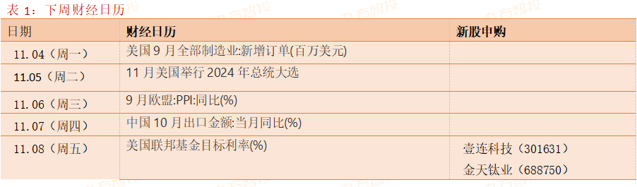 1. 证监会等六部门:允许外国投资者以要约收购方式实施战略投资。点评:11月1日,商务部、证监会、国资委、税务总局、市场监管总局、国家外汇局修订发布《外国投资者对上市公司战略投资管理办法》。其中提出,增加要约收购这一战略投资方式。原《办法》规定的战略投资方式仅包括定向增发和协议转让两种方式。根据《中华人民共和国证券法》相关规定和证券市场实际情况,此次修订增加允许外国投资者以要约收购方式实施战略投资。同时其中提出,放宽外国投资者的资产要求。原《办法》要求外国投资者境外实有资产总额不低于1亿美元或管理的境外实有资产总额不低于5亿美元。为便利和促进上市公司引入更多长期资金,本次修订适当降低了对非控股股东外国投资者的资产要求。如外国投资者实施战略投资后不成为上市公司的控股股东,则对其资产要求降低为实有资产总额不低于5000万美元或者管理的实有资产总额不低于3亿美元。所长认为顶层政策放开对外资投资国内的门槛,并允许要约收购,对国内经济和股市都是重大利好。特别是放开对外资对国内公司的收购,这意味着国内资本市场会引进新的资金进来,对国内经济复苏有着很重要的意义,短期对国内二级资本市场并购重组板块也是重大利好。点评:11月1日,美国10月非农就业人数增加1.2万人,预估为增加10.5万人,前值向下修正3.1万人,至22.3万人。大幅低于预期。美国10月份非农数据公布后,据CME“美联储观察”:美联储到11月降25个基点的概率为99.7%,维持当前利率不变的概率为0%,降息50个基点的概率为0.3%。到12月维持当前利率不变的概率为0%,累计降息25个基点的概率为19.5%,累计降息50个基点的概率为80.3%。所长认为,美国10月份非农数据低于预期后,也就是说11月份美国降息25个基点基本是事实了,这样也给全球资本市场释放流动性创造了良好的条件,对国内资本市场来说,也是重要利好。3. 上海市进一步加力支持汽车以旧换新补贴政策实施细则发布。点评:11月1日,上海市商务委等五部门印发《上海市进一步加力支持汽车以旧换新补贴政策实施细则》,自2024年11月1日(含当日,下同)至2024年12月31日,个人消费者购买5万元以上(含)纯电动小客车新车,注册使用性质为非营运,且在规定期限内在本市转让本人名下在外省市登记的非营业性小客车,本市给予个人消费者一次性1.5万元购车补贴。自2024年11月1日至2024年12月31日,个人消费者购买5万元以上(含)国六b排放标准的燃油小客车新车,注册使用性质为非营运的,且在规定期限内,在本市转让本人名下在外省市登记的国五及以下排放标准非营业性燃油小客车,本市给予个人消费者一次性1.2万元购车补贴。今年以来,全国各地都陆续出台对汽车消费的刺激政策,汽车作为最重要的可选消费品,是国内消费的支柱性行业,经济复苏,一定离不开汽车消费景气度的上行。所长认为在政策鼓励刺激下,今年和明年汽车消费景气度都将高企,从而带动汽车产业链公司业绩。4. 9月国内市场手机出货量2537.1万部,同比下降23.8%。点评:11月1日,中国信通院发布数据,2024年9月,国内市场手机出货量2537.1万部,同比下降23.8%,其中,5G手机2231.6万部,同比下降22.3%,占同期手机出货量的88.0%。2024年9月,国产品牌手机出货量2035.9万部,同比下降18.4%,占同期手机出货量的80.2%。2024年9月,智能手机出货量2371.7万部,同比下降25.7%,占同期手机出货量的93.5%;智能手机上市新机型18款,同比下降43.8%,占同期手机上市新机型数量的51.4%。所长认为9月份国内智能手机销量是低于预期的,主要原因一方面是去年高基数影响,和今年9月份苹果新机销售遇冷影响,手机作为我们日常生活重要的可选消费品,除了正常的换机周期外,还受到宏观经济影响。9月份以来,国内经济政策强刺激,预期10月开始国内经济有望逐步走向复苏,从而带动智能手机的消费,同时明年是智能手机传统换机周期,明年智能手机有望恢复高增长。5. 上交所:在鼓励上市公司规范、有效实施高质量并购重组的同时始终对各类“借重组之名、行套利之实”的不当并购交易高度关注、从严监管。点评:11月1日,上交所整理了近年来沪市比较有代表性的30个并购重组案例,即日起以《并购重组典型案例汇编》的形式向上市公司发布。为进一步引导上市公司和中介机构合规筹划推进并购重组,此次并购重组案例汇编还专门选取了“内幕交易防控不当”“标的公司财务造假”“蹭热点式重组炒作股价”“盲目跨界标的失控”等4种负面类型对应的12个案例。上述案例的选取旨在提醒上市公司在并购重组过程中树立正确的发展观念、警惕相关风险,体现了一线监管在鼓励上市公司规范、有效实施高质量并购重组的同时,始终对各类“借重组之名、行套利之实”的不当并购交易高度关注、从严监管的鲜明导向。所长认为上交所出来给当下并购重组适当降温,利好真的并购重组,不少上市公司未来做高股价,高位减持,虚假报并购,从而影响真正的并购重组企业审批进度。所以对目前已经披露并购重组的企业,特别是也已经进入并购重组后期的企业是重要利好。