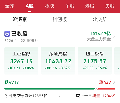 三大指数均跌超3%,全市场超4900只个股飘绿