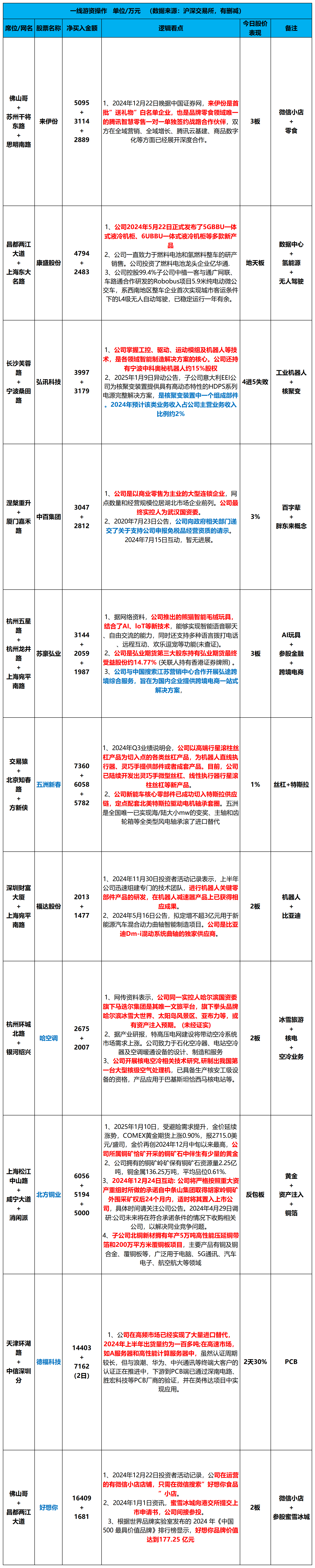 2025年1月13日星期一,龙虎榜解析。