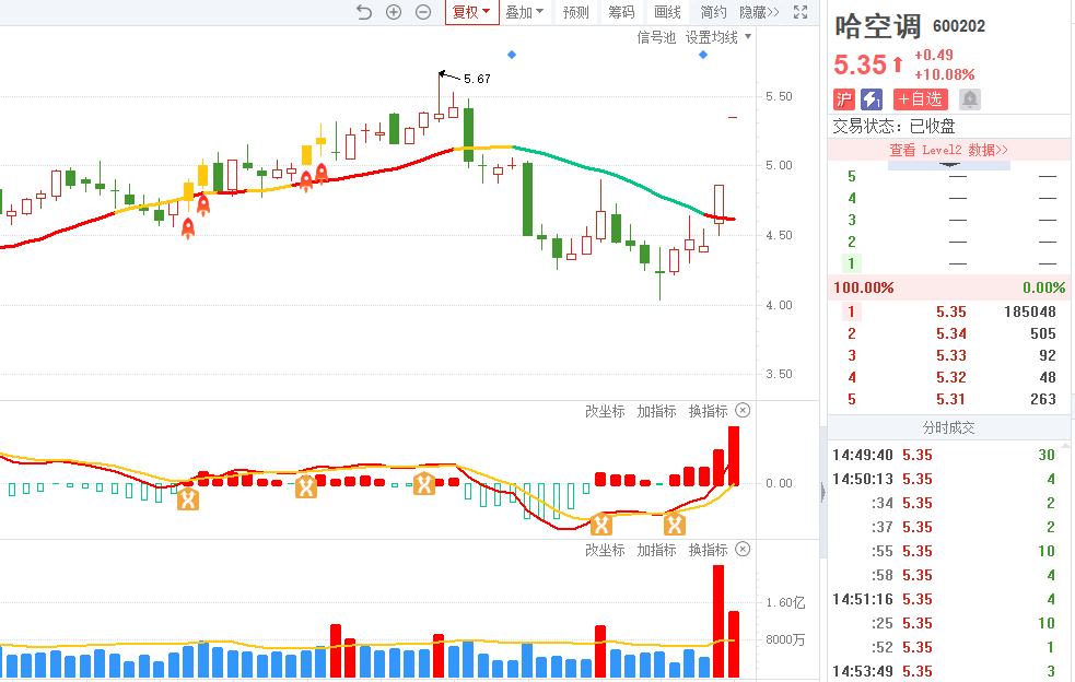 1)哈空调-四维操盘-近期出现火箭信号且底部量柱由绿转红