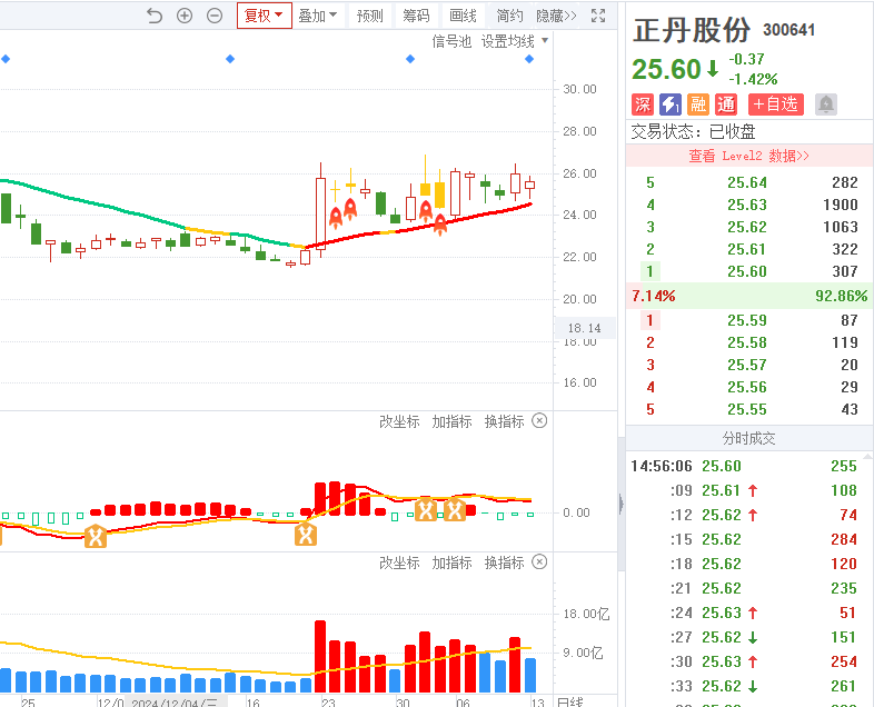 2)正丹股份-四维操盘-近期出现火箭信号且底部量柱由绿转红