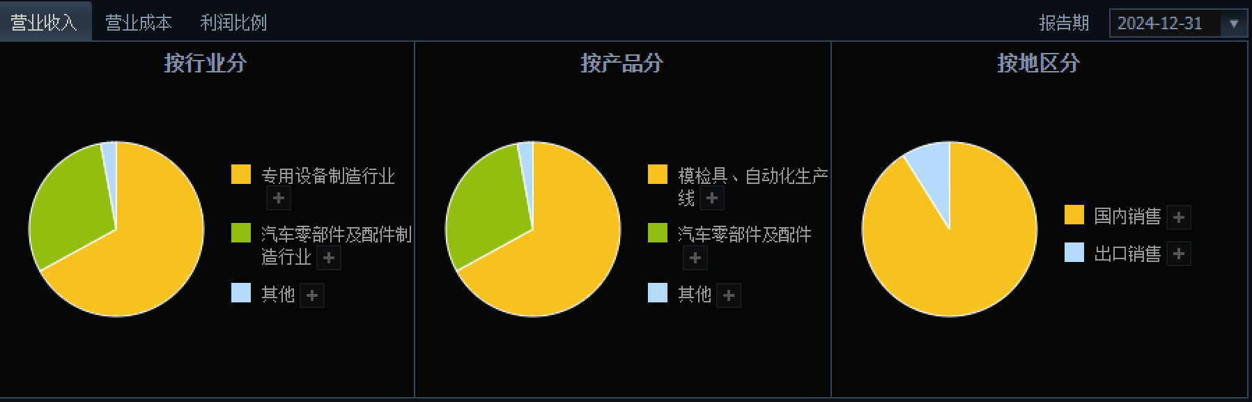 2024年,公司装备业务积极陪同国内头部品牌深化海外本地化开发。后续有望受益于自主品牌加速“出口”到“出海”,受益于自主车企海外建厂、加速海外车型投放,展望2025年,伴随自主品牌出海,公司装备业务有望持续增长。2024年轻量化零部件收入7.3亿元,同比+154%。展望后续,伴随高强度板及铝合金冲焊件新能源车型定点陆续量产;一体压铸增程车型量产+插混定点,公司零部件有望持续拓展。