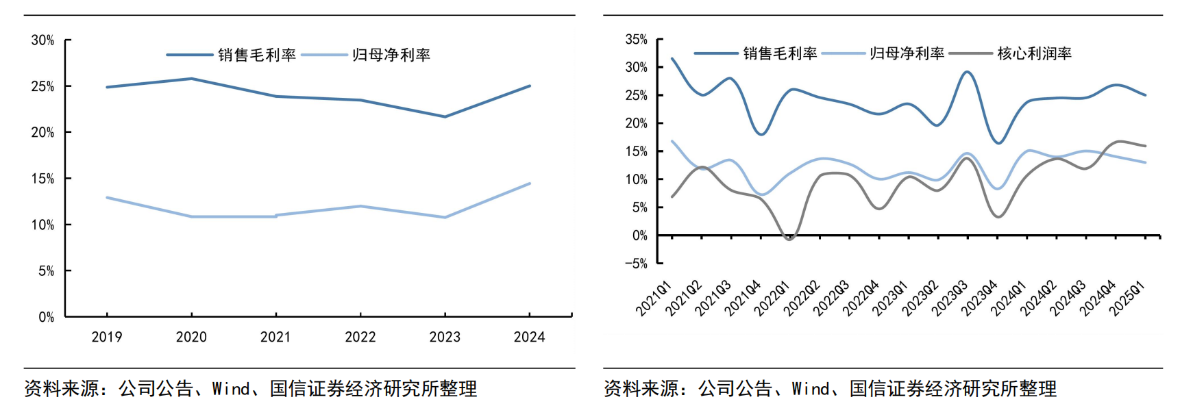 2025Q1实现毛利率25.00%,同比+1.27pct;归母净利率12.99%,同比-2.03pct。2025Q1销售/管理/研发/财务费用率分别为0.67%/3.88%/3.88%/0.00%,同比分别-1.11/-0.86/-1.65/+0.40pct。公司装备及零部件业务加速起量,规模效应有望持续兑现。