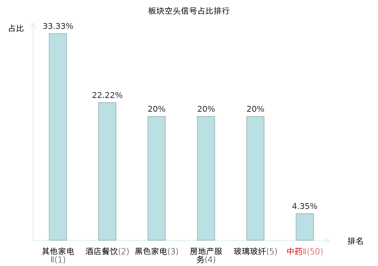 全市场所有行业板块中主力空头信号占比排名中,其他家电Ⅱ板块位居第一。家居用品板块名次提升最快,较昨日上升111位。