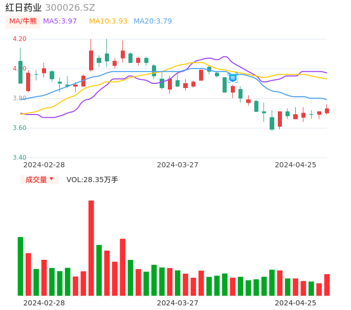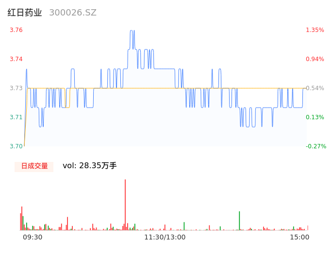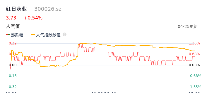 04月25日,红日药业收报3.73,股价涨幅0.54%,成交金额1.06亿元,换手率1.03%。