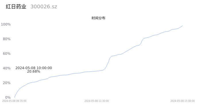 300026红日药业2024年05月08日成交46.09万手,成交金额1.81亿元,相较昨日放量15.44万手,换手率1.67%,成交清淡。