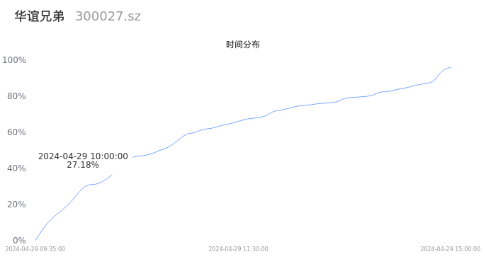 300027华谊兄弟2024年04月29日成交47.10万手,成交金额9438.40万元,相较昨日放量5.89万手,换手率1.95%,成交清淡。