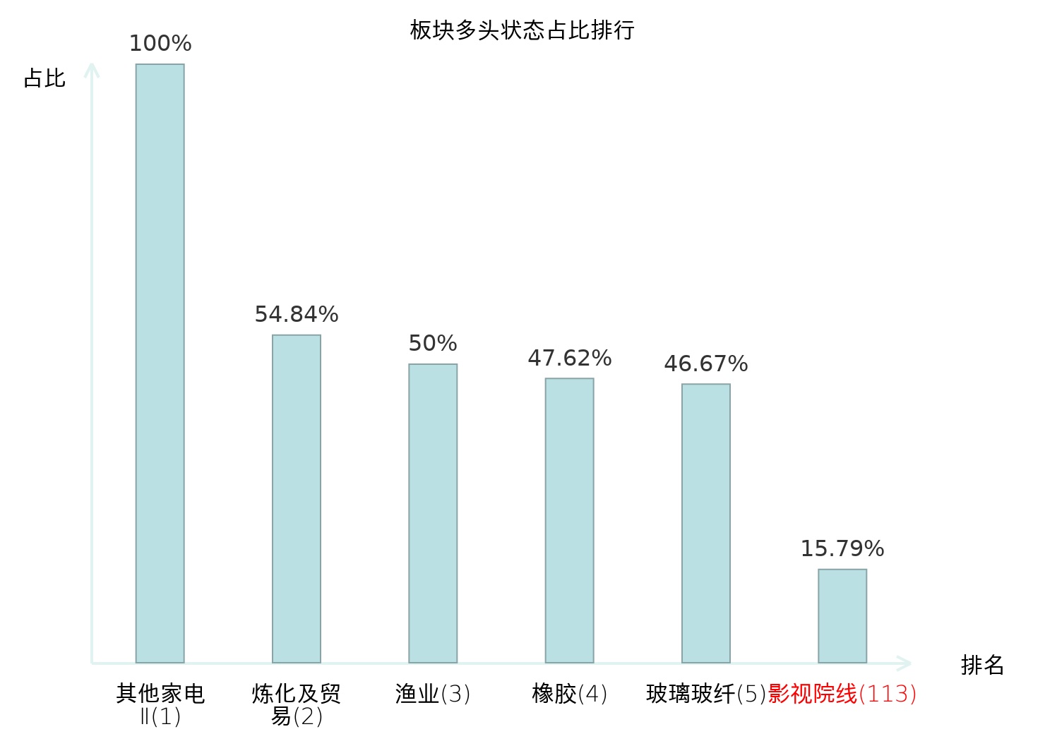 全市场所有行业板块中主力多头状态占比排名中,其他家电Ⅱ板块位居第一。铁路公路板块名次提升最快,较昨日上升37位。