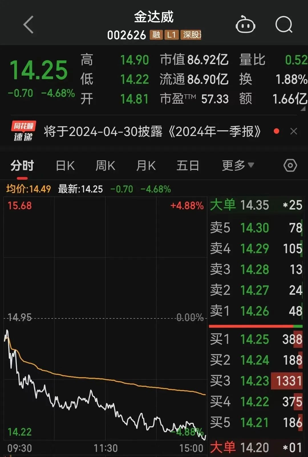截至4月8日收盘,金达威股价报14.25元/股,总市值约87亿元。