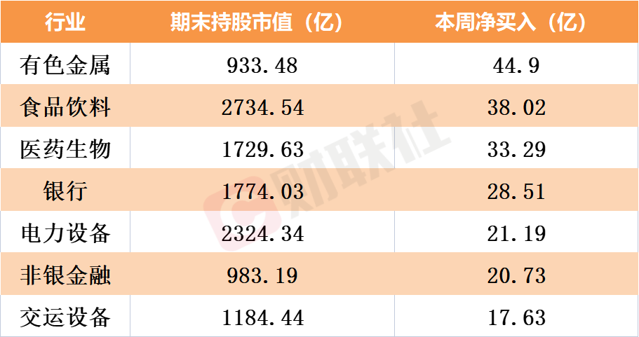 ②加仓有色金属、食品饮料、医药生物行业均超30亿元;