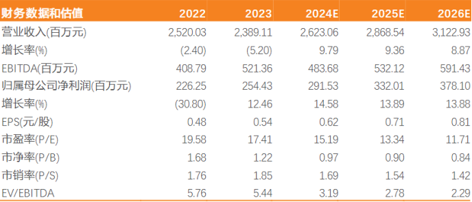 23年公司实现营业收入23.89亿元,同比-5.2%,实现归母净利润2.54亿元,同比+12.39%,扣非归母净利润2.48亿元,同比+36.07%,收入下降主要由于22年同期实现房地产业务收入2.49亿元,23年无同类业务,扣非业绩显著提升,天风证券认为主要由于23年非经常性损益中的营业外收支净额以及其他项目明显减少。