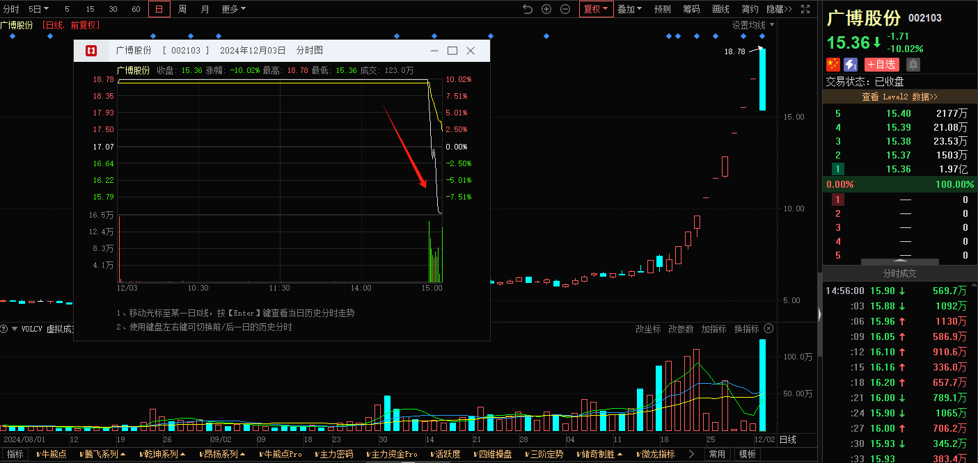 那么下午连续大跌是不是就对应反杀呢,也就是冲高之后直接反杀,进而带崩了市场的个股么,比如华胜天成、广博股份,最后实在是扛不住然后奔向跌停
