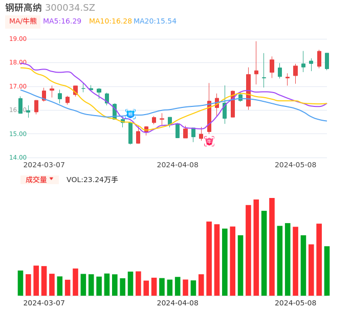 05月08日,钢研高纳收报17.74,股价涨幅-4.00%,成交金额4.19亿元,换手率3.03%。