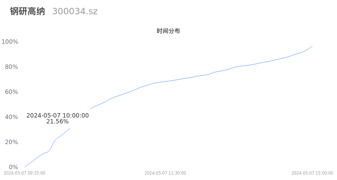 300034钢研高纳2024年05月07日成交33.84万手,成交金额6.20亿元,相较昨日放量9.72万手,换手率4.42%,成交清淡。