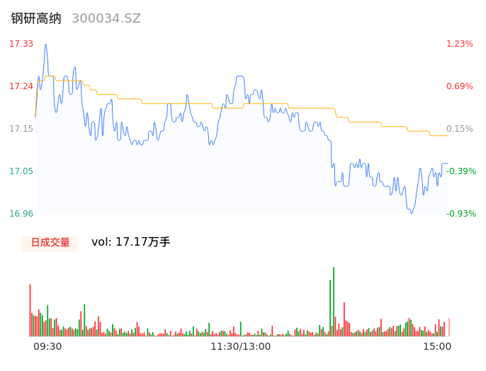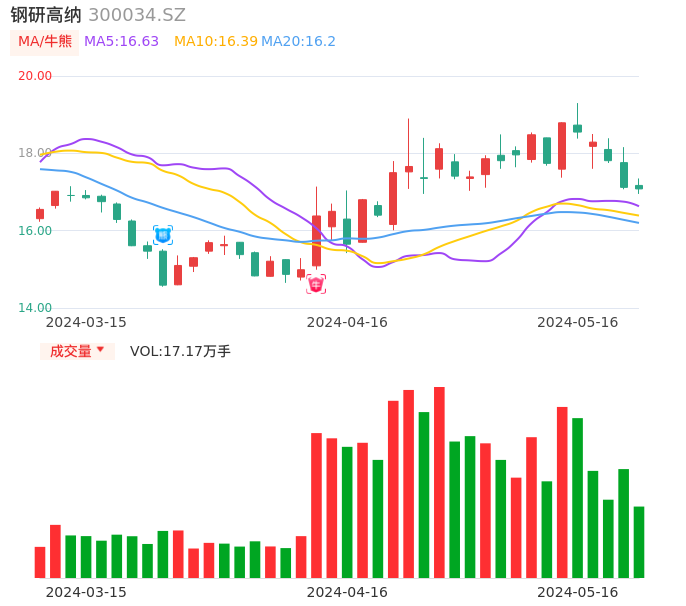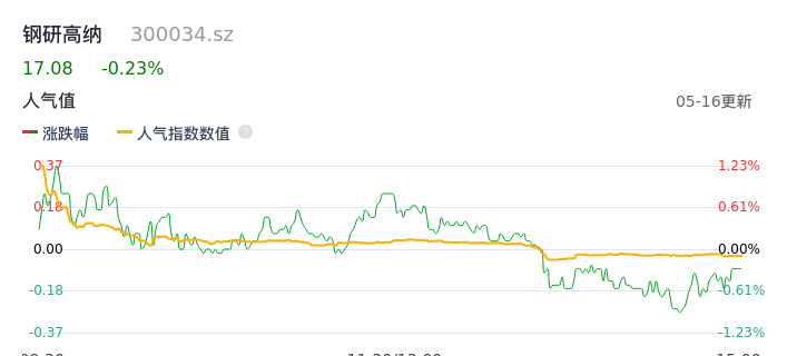 05月16日,钢研高纳收报17.08,股价涨幅-0.23%,成交金额2.94亿元,换手率2.24%。