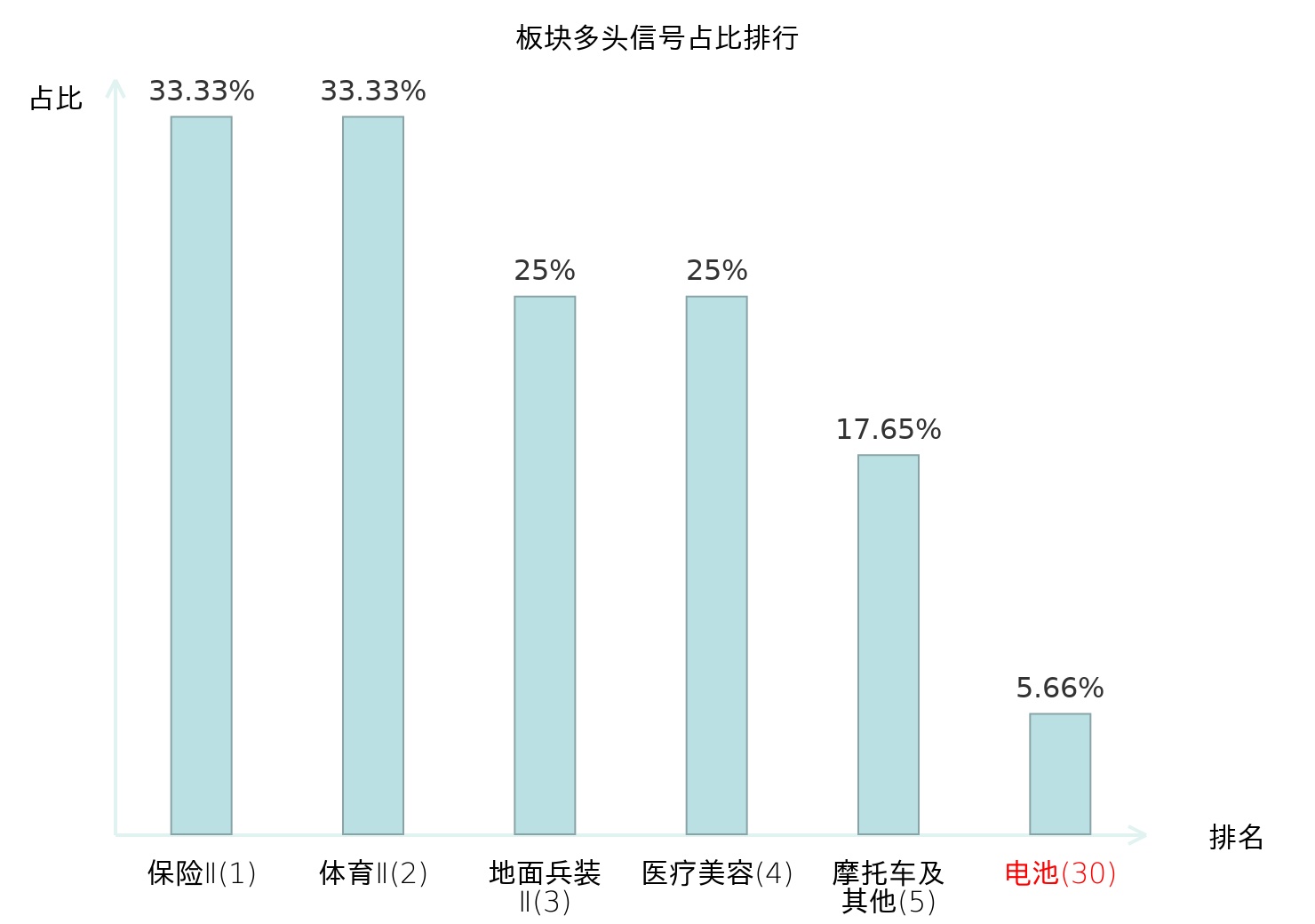 全市场所有行业板块中主力多头信号占比排名中,保险Ⅱ板块位居第一。体育Ⅱ板块名次提升最快,较昨日上升128位。