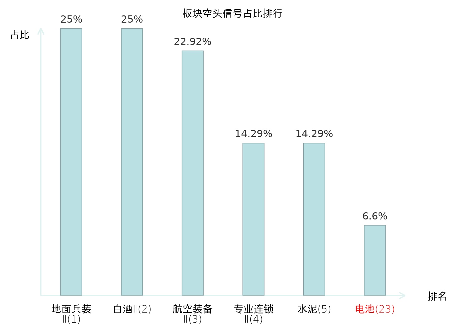 全市场所有行业板块中主力空头信号占比排名中,地面兵装Ⅱ板块位居第一。航空装备Ⅱ板块名次提升最快,较昨日上升115位。