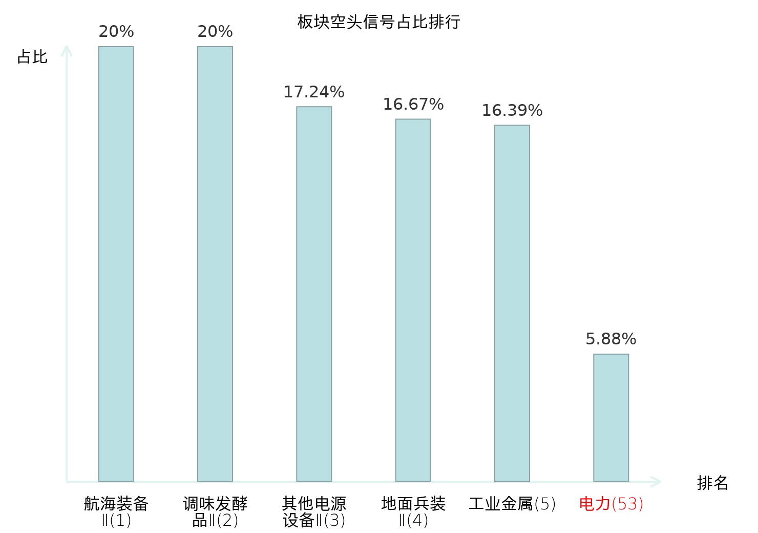 从主力宝信号数据分析,九洲集团所属的电力板块中共6只股票发出主力空头信号,主力空头信号占比在全行业中排名第53位,较昨日上升24位。排名越高说明主力当日卖出意愿越强。全市场所有行业板块中主力空头信号占比排名中,航海装备Ⅱ板块位居第一;调味发酵品Ⅱ板块名次提升最快,较昨日上升122位。这些变动反映了不同行业间主力资金偏好的变化,为投资者提供了市场情绪和潜在投资机会的重要线索。