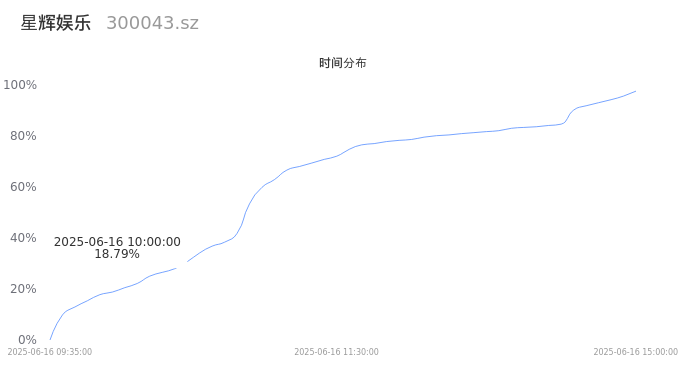 300043星辉娱乐2025年06月16日成交292.77万手,成交金额14.58亿,相较昨日放量61.37万手,换手率23.54%,成交活跃。